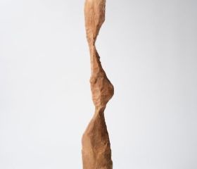 La forma delle sculture di Inomata ricorda le complesse architetture lignee costruite dal Castor fiber Linnaeus, una particolare specie di castoro diffuso in Eurasia che è solito masticare gli alberi per abbatterli e costruirvi delle dighe. Per la loro realizzazione, l’artista si è affidata allo scultore Takeno Yumi e all’azione di una macchina da taglio automatica (CNC): copie degli alberi rosicchiati dai castori, le sculture esplorano le possibilità umane e artificiali di riproduzione di un oggetto frutto dell’azione animale. Ad accompagnare i due lavori scultorei, documenti e video svelano al pubblico il processo creativo dietro la produzione dell’opera. Ripensando la definizione di azione scultorea, l’artista suggerisce nuove e inaspettate possibilità di collaborazione e di dialogo con la natura.