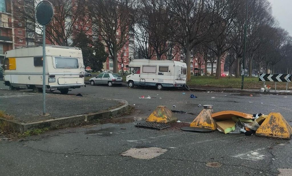 Blitz della Municipale a Mirafiori contro i camper rom: "Allontanatevi o sequestriamo i mezzi"