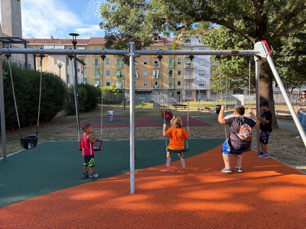 I lavori hanno puntato sull’accessibilità e sul miglioramento della fruizione degli spazi: l’area giochi è stata potenziata con tre nuove attrezzature ludiche e una pavimentazione antitrauma completamente rifatta. Per facilitare l’accesso anche a persone con disabilità o difficoltà motorie, sono stati abbassati i cordoli lungo il viale principale e creati nuovi vialetti interni in marmette autobloccanti che collegano le varie aree gioco.