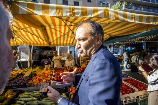 C’è il signor Serafino, volto storico del mercato, così come ci sono le nuove generazioni di venditori di frutta e verdura. Un posto vivo, nonostante la settimana centrale di agosto. Lo Russo si stupisce della numerosa presenza di banchi.