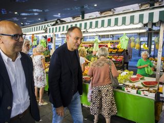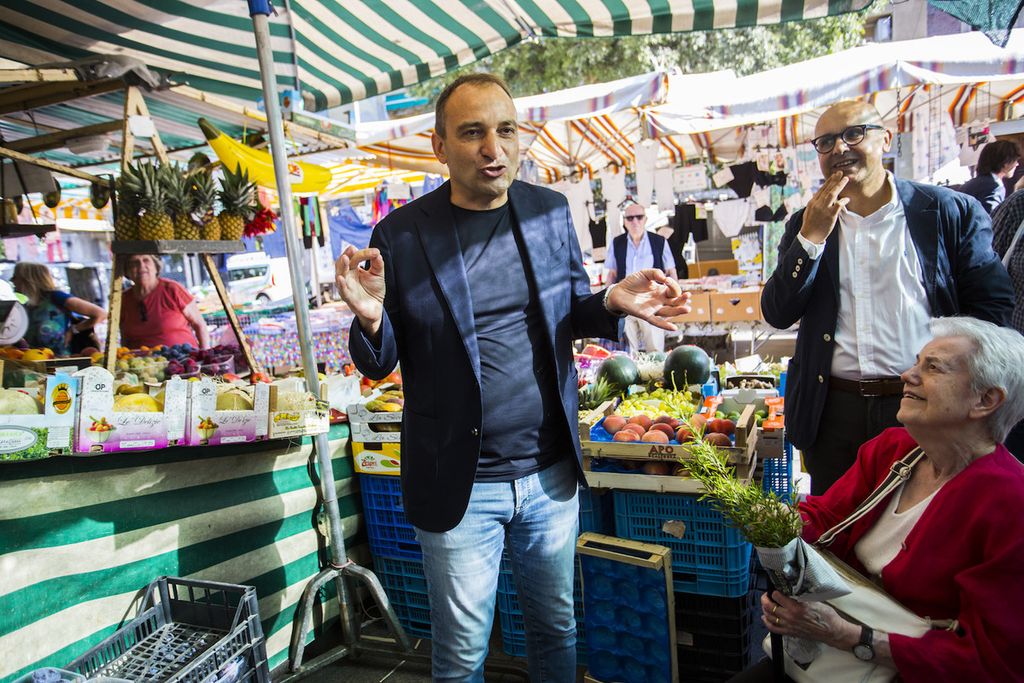 C’è il signor Serafino, volto storico del mercato, così come ci sono le nuove generazioni di venditori di frutta e verdura. Un posto vivo, nonostante la settimana centrale di agosto. Lo Russo si stupisce della numerosa presenza di banchi.