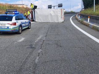 Furgone si ribalta sullo svincolo di Venaria Reale, caos in tangenziale