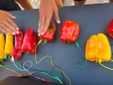 “Ad attivare i sensori all’interno dei peperoni è il tocco umano – spiega Zilocchi – ogni peperone è collegato con un sensore e risponde esattamente come un tasto di un pianoforte, i suoni vengono poi assegnati tramite un’interfaccia di mia invenzione”.