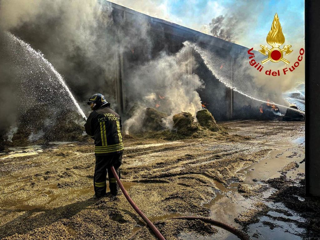 Distrutto dalle fiamme un capannone per lo stoccaggio del fieno a Rivarolo.