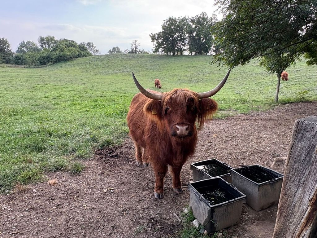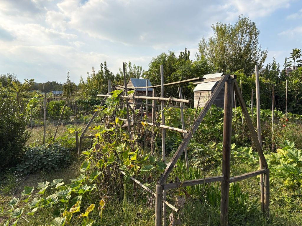 Gli orti si caratterizzano per un approccio ecosostenibile: le recinzioni in legno di castagno, le bealere inerbite tutto l’anno a sostegno degli impollinatori, e la presenza di tre mucche scozzesi, galline e il gallo Sandro contribuiscono a creare un ambiente produttivo ma anche educativo e naturale.