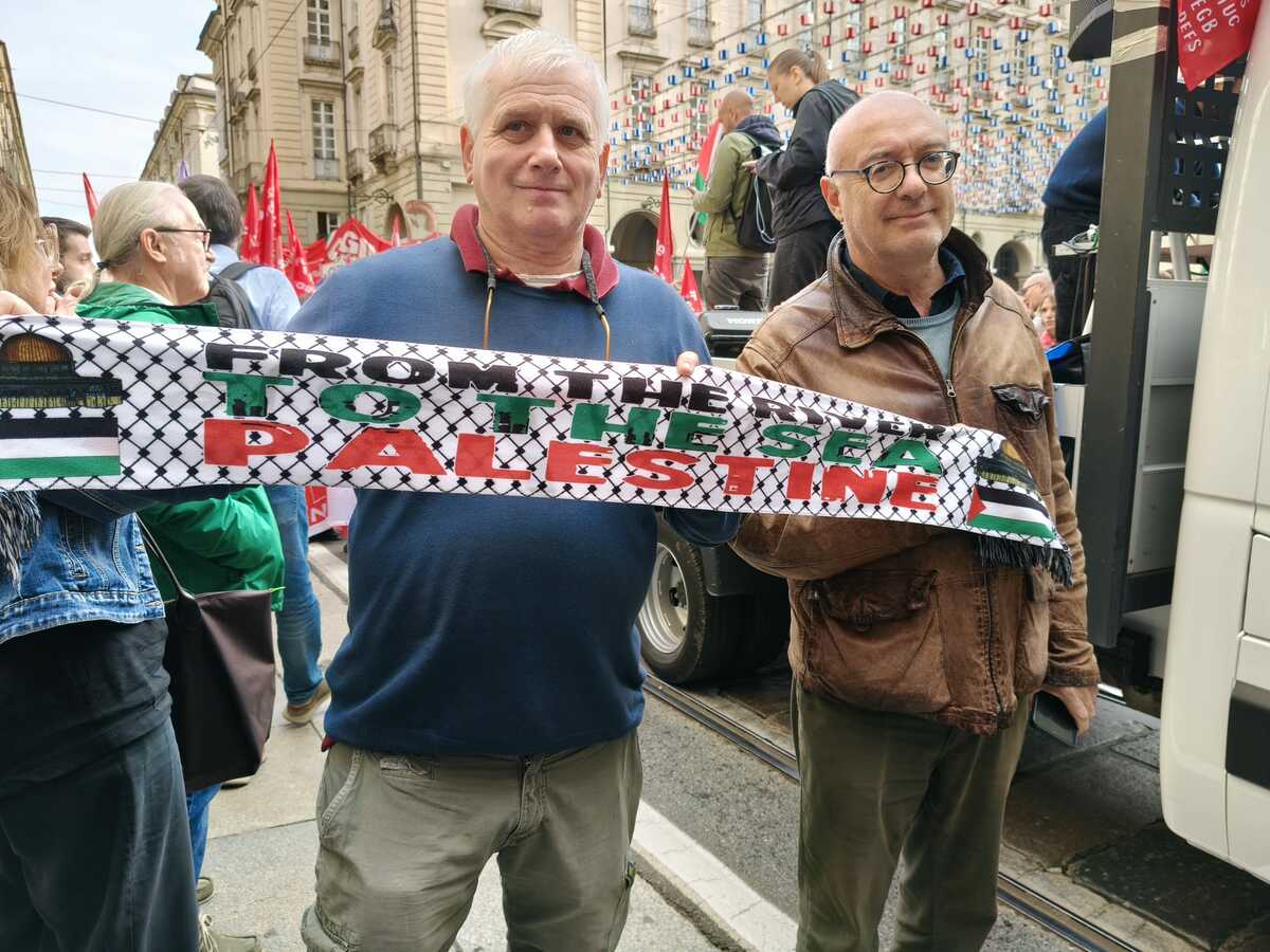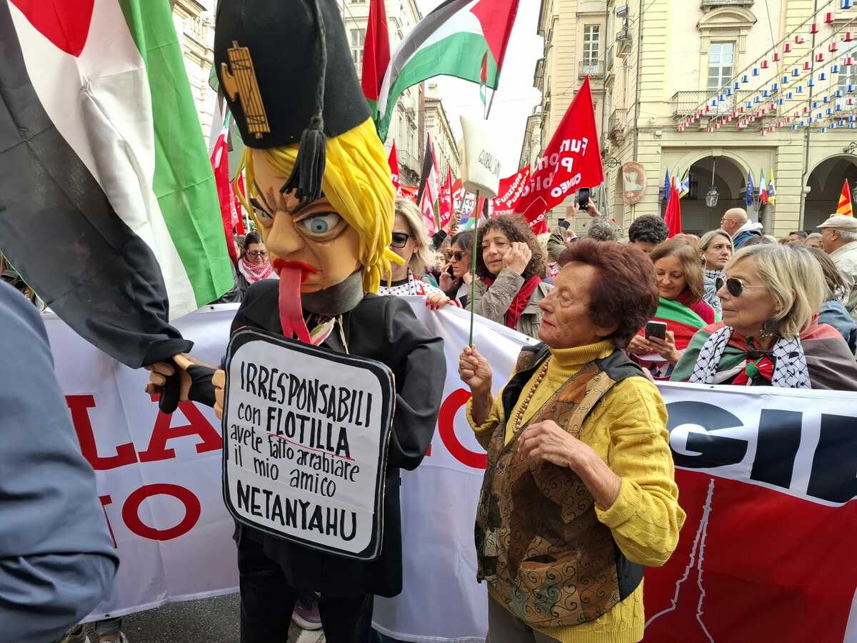 "Chiediamo la liberazione incondizionata di tutti gli attivisti e le attiviste e la fine del genocidio". concludono gli esponenti del centrosinistra, pentastellati e civici. Ad appoggiare l'iniziativa anche Torino Domani: presente in corteo anche l'assessore Mimmo Carretta.