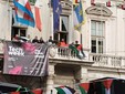 "Che bello vedere - hanno replicato al microfono i manifestanti - la bandiera della Palestina dal balcone del Comune: la vogliamo vedere tutto l'anno, perché è simbolo di resistenza. Torino è gemellata con Gaza: vedere quel vessillo è il minimo".