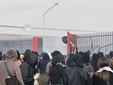 E dai megafoni i manifestanti, molti con il volto coperto da sciarpe ed occhiali, hanno urlato: "Dietro questo filo spinato viene dato vita ad ordigni che uccidono le persone: quindi bloccare qui, vuol dire bloccare la produzione di questa m...a".