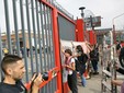 Un gruppo di Pro Pal è riuscito anche nel giro di pochi minuti a sfondare una delle porte a scorrimento laterali.
