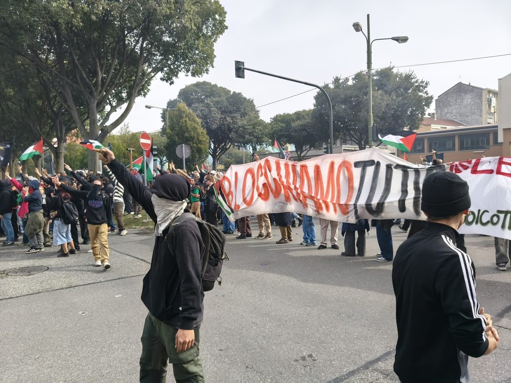 "Ieri - hanno aggiunto - abbiamo bloccato l'aeroporto di Caselle, dove c'è la seconda sede: il Governo investe milioni per supportare questa azienda bellica. Leonardo è la terza esportatrice di armi per Israele nel mondo".
