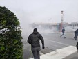 Gli agenti, schierati in assetto antisommossa, hanno risposto con il lancio di un ingente quantitativo di lacrimogeni.
