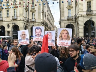 "Questo governo - hanno urlato dal megafono sul carro di "Torino per Gaza" - ha provato a riempirci di vergogna: tocca ai lavoratori rimandare questo sistema marcio nella pattumiera". Un pensiero anche ai lavoratori di Amazon, che da stamattina stanno bloccando il magazzino di Brandizzo.