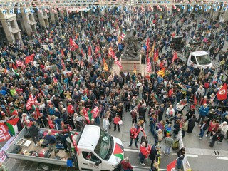 Sono oltre 50mila, secondo la CGIL Torino, le persone nelle strade di Torino per lo sciopero generale. Dalla piazza del Comune è partito ora anche lo spezzone sociale, che sventola lo striscione "Blocchiamo tutto".