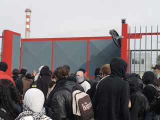 "Ieri - hanno aggiunto - abbiamo bloccato l'aeroporto di Caselle, dove c'è la seconda sede: il Governo investe milioni per supportare questa azienda bellica. Leonardo è la terza esportatrice di armi per Israele nel mondo".