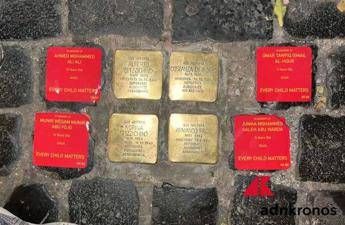 Adesivi a sfondo rosso con scritti nomi di vittime a Gaza, con tanto di età, sono apparsi a Roma accanto ad alcune delle pietre d'inciampo che ricordano gli ebrei morti nei campi di concentramento. In particolare, gli adesivi sono comparsi a Trastevere, in via Natale del Grande e a piazza san Cosimato - dove già sono stati rimossi -, oltre che a piazza Bologna. A rivendicare l'azione, con una nota inviata all'Adnkronos, il collettivo 'Frà Tau', che, come spiega, porta nel nome "il segno francescano del Tau".