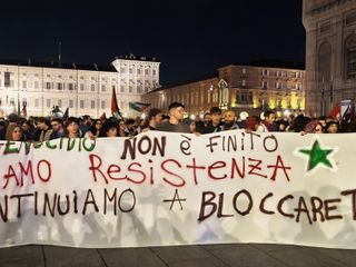 Il ritrovo in piazza Castello nonostante il divieto della Questura. La marcia per le vie del centro, il ballo sulle note di "Bella Ciao",i vessilli della Palestina e il supporto dei residenti che rumoreggiano con pentole e coperchi