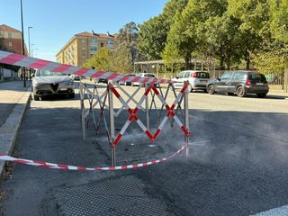 Nuvole di vapore bianco salgono dall’asfalto. E intanto l'area è stata transennata