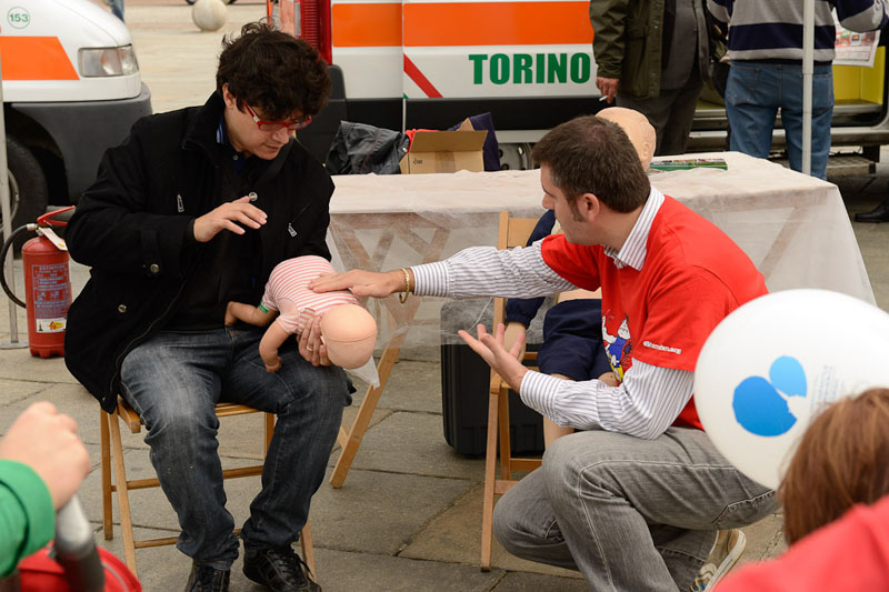 Negli stand di piazza Bodoni – allestiti da ospedale Infantile Regina Margherita e da Croce Verde Torino – gli operatori saranno a disposizione dei cittadini e spiegheranno come eseguire la manovra di disostruzione delle vie aeree in caso di inalazione dei corpi estranei, anche con alcune prove pratiche realizzate con l’ausilio di manichini pediatrici.