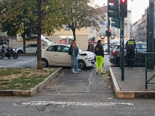 Momenti di paura nel tardo pomeriggio di oggi, giovedì 9 ottobre, per l'incidente avvenuto in corso Ferrucci all'angolo con via Fratelli Bandiera.