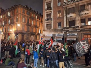 Bandiere palestinesi e palloni "sporchi di sangue" sul complesso di via Verdi. Il movimento "Torino per Gaza" contesta la sfida di Udine
