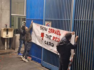 Presidio davanti alla Rai contro Italia-Israele: "Meglio senza Mondiali che complici di criminali" [VIDEO e FOTO]