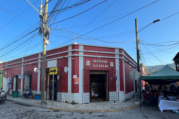 A pochi chilometri dalle pietre sacre, la storia continua in un’altra forma. La cittadina che accoglie i visitatori, vive del ritmo lento e paziente dell’America Centrale. Le sue case basse, color terracotta o ocra, si affacciano su strade acciottolate che risuonano al passaggio dei tuk-tuk. Sui tetti, i fili elettrici si incrociano come ragnatele e i balconi di legno sono adornati da vasi di fiori. Qui la vita quotidiana convive con la memoria, senza mai trasformarla in museo. La giornata comincia presto: le donne lavano i panni nei cortili, gli uomini trasportano casse di frutta. Dalla piazza principale arriva l’odore di caffè tostato e tortillas calde. I bambini, in divisa, vanno a scuola ridendo, mentre gli anziani siedono davanti alle botteghe. Tutto si muove con una calma antica, come se il tempo avesse un altro passo. Ogni gesto è lento ma preciso, ogni incontro è un saluto che conosce la sua importanza. Sull’angolo tra due vie, un edificio rosso porta una scritta bianca: Souvenirs Yak Kuk Mo. Dentro, un artigiano modella statuette di pietra, piccole copie delle steli Maya. Lavora in silenzio, con la concentrazione di chi ripete un rito più che un mestiere. Quando gli chiedo se il turismo ha cambiato la città, sorride appena. “Un po’ sì,” dice, “ma la gente resta la stessa.” Il suo sguardo torna subito al lavoro, come se le parole non bastassero a spiegare ciò che il gesto racchiude.