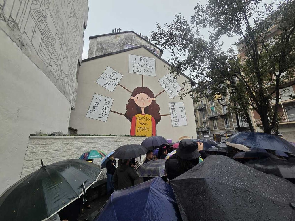 "Questo non è amore". Una grande scritta all'interno di una figura stilizzata e che ora è visibile per chiunque attraverserà corso Vercelli, nel cuore di Barriera di Milano. L'opera è stata inaugurata oggi, sotto una pioggia battente. Raffigura Giulia Cecchettin, vittima di femminicidio, per mano del fidanzato Filippo Turetta, la cui morte è divenuta simbolo di una lotta per porre fine a una piaga che, nonostante siano passati due anni, continua ancora a resistere.