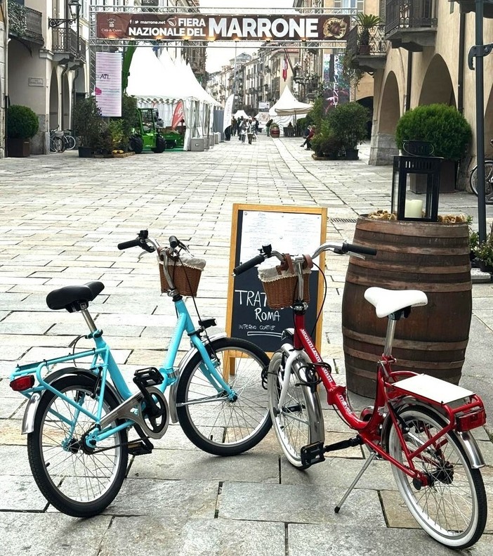 A Cuneo, nei giorni della Fiera del Marrone, ne abbiamo compiuto uno: venti biciclette vintage, colorate, leggere, con il cestino di vimini davanti, sono comparse davanti alle botteghe e alle osterie del centro.