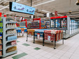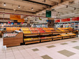 Il rinnovamento ha interessato il layout complessivo del supermercato, con modifiche che hanno valorizzato in particolare l’area dei freschi e freschissimi. A questa prima zona del percorso di spesa, che comprende anche i banchi serviti, è stata affiancata una sezione surgelati completamente ridisegnata, con impianti frigo di nuova generazione per migliorare le prestazioni energetiche. Anche la sezione dei banchi serviti è stata adeguata al nuovo format, con una completa integrazione della linea Gastronomia e Carni e con la dotazione al reparto Pescheria di un impianto di produzione del ghiaccio con caduta dall’alto, che rende più agevole agli operatori il lavoro quotidiano di preparazione del banco.
