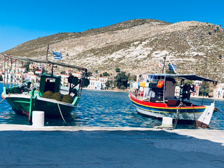 Il porto è la lente attraverso cui tutto si legge. Le imbarcazioni oscillano in un movimento continuo, e il Meltemi — vento caldo dell’Egeo — regala leggerezza ai pensieri. Le sedie rivolte al mare puntano tutte nella stessa direzione, come se l’isola avesse un’unica via di fuga: l’orizzonte. Una viaggiatrice sola, a un tavolo un po’ defilato, osserva in silenzio. Qui si guarda più di quanto si parli. Un uomo apparecchia i tavoli di una taverna: si muove piano, con la calma di chi conosce il valore del tempo e non gli oppone resistenza. Quando si ferma, accenna un sorriso e dice soltanto: «Qui non cambia nulla, è questo il bello». Non aggiunge altro. È abbastanza. In quella frase si condensa la filosofia del luogo: non accelerare, non fingere, non essere altro rispetto a ciò che si è. Il pesce, in tavola, arriva quasi senza mediazioni. Crudo o appena scottato, con olio, limone e capperi carnosi. Il resto è vento e pane da scarpetta. Non c’è scenografia, non c’è narrazione di supporto: si mangia guardando il mare e lasciando che sia il piatto a parlare. Nell’ora di pranzo, Kastellorizo riduce tutto a pochi gesti essenziali.
