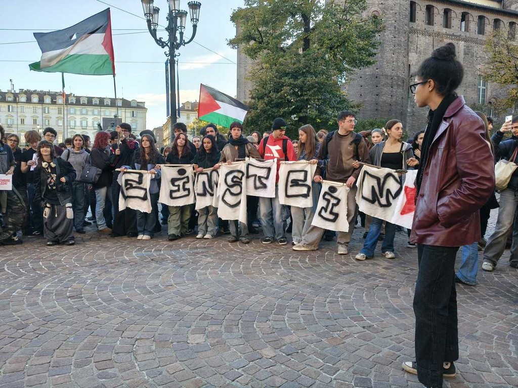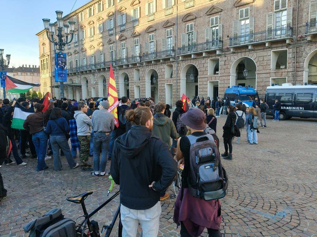 Ma non è l'unico motivo di protesta di Potere al Popolo: "Siamo qua per contestare la maggioranza in Sala Rossa: è in corso una falsa tregua, perché Israele non ha mai avuto la volontà di interrompere il genocidio in Palestina, senza che il Comune di Torino dica nulla".