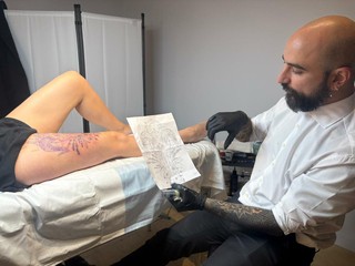 “In questo caso sto lavorano su una cliente che arriva dalla Svezia - spiega Chironna - abbiamo lavorato quattro ore per decidere il design del tatuaggio e ce ne vogliono sei per completarlo. Portare l’opera d’arte che vive sul corpo di una persona all’interno di una fiera d’arte per noi è un’emozione e un grande riconoscimento”.