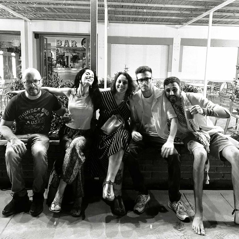 A seguire, doppio reading: sul palco il collettivo La Lenza, nato nel 2024 come laboratorio poi trasformato in officina permanente di scrittura e confronto (Lorenzo Bertoni, Dafne Graziano, Luca Orlandi, Sabrina Tolve e lo stesso Daniele Vaira), e il collettivo Sincronie ~ poesia itinerante (nella foto sotto), con Anna Rita Germinario, Eleonora Baggio Compagnucci, Giulia Castelli e Sabrina Tolve, voci che risuonano tra Italia e Irlanda.