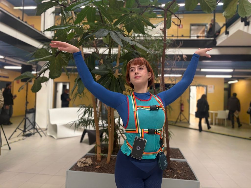 "È basata sull’IA, sugli algoritmi e sul gioco Just dance si balla seguendo un avatar - spiega l’artista -. Invece di ballare seguendo un avatar io ballo seguendo le istruzioni di uno speaker che porto addosso. Posso scegliere tra tre diversi balli: uno è quello di Baby in Dirty Dancing, l’altro è Jane Fonda nei suoi balli aerobici e l’altro è il Cigno Nero del balletto”.