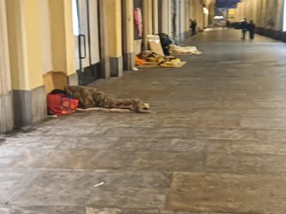 Nel cuore di Torino da tempo si registra la presenza stabile di accampamenti di fortuna di clochard, materassi abbandonati e persino abiti stesi ad asciugare alle vetrine dei negozi storici. Come si vede dalle foto un dormitorio improvvisato sotto i portici monumentali, a pochi metri dalle Gallerie d'Italia.