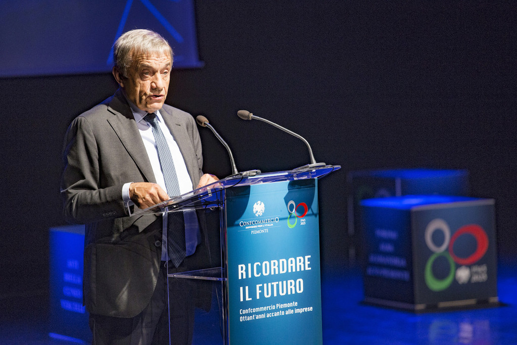 “Se sei venuto a parlarmi del problema, senza una soluzione, allora sei parte del problema”. Il presidente della Regione Piemonte Alberto Cirio cita una scritta che compare nella carrozzeria Bonfiglio di Alba, durante la celebrazione dell’80° compleanno di Confcommercio Piemonte.