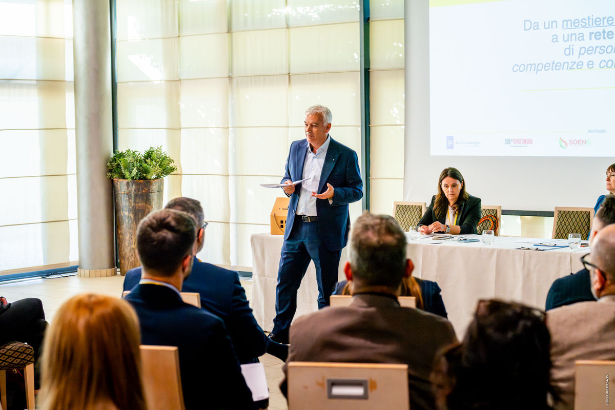 Cuore del progetto e padrone di casa del SESHAT DAY, Marco Demonte, co-fondatore di Seshat e ideatore del format, che ha aperto i lavori raccontando la genesi del modello: “Dopo trent’anni di esperienza nell’edilizia e nell’amministrazione condominiale – ha spiegato – ho sentito il bisogno di restituire tempo ai professionisti, di liberarli dalla frenesia e restituire dignità e visione a una figura spesso percepita come solitaria”.