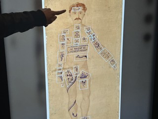 La collezione comprende riproduzioni di corpi tatuati di persone vissute tra la fine dell’800 e i primi decenni del 900, quasi tutte carcerate tra Torino e Alessandria. Era una delle aree di interesse di Lombroso, convinto che incisioni e disegni sulla pelle potessero essere indicatori di tendenze criminali e istinti primitivi. Sono dieci le figure rappresentate, ma si sale a venti contando anche i particolari di corpi non completi.