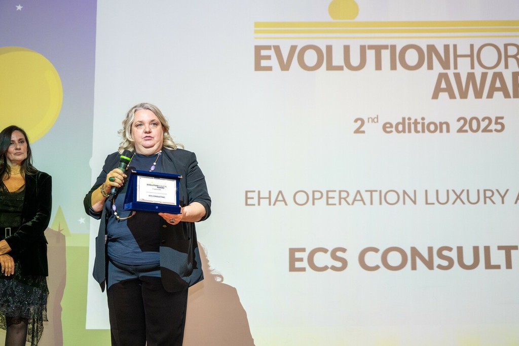 Il premio EHA Operation Luxury Advisor è andato alla Ecs Consulting di Vaiano Cremasco (CR), con la seguente motivazione: fondata nel 2014 da Gloria Gaiotto, è una realtà che nasce con l’obiettivo di elevare gli standard dell’accoglienza e della relazione con il cliente nel mondo del lusso, dell’hotellerie e del retail. L’esperienza della fondatrice nei grandi gruppi internazionali e la sua visione strategica hanno dato vita ad un metodo unico, dove professionalità, formazione e cultura del servizio, si fondono in un percorso di eccellenza.
