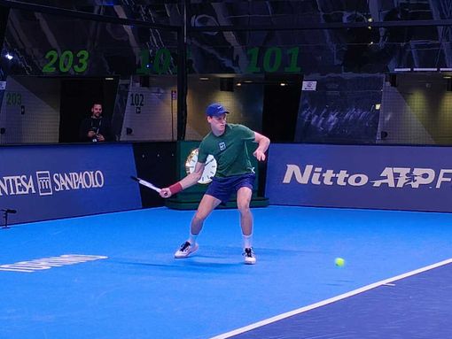 Primo allenamento per Jannik Sinner e Carlos Alcaraz, sul campo del foyer dell'Inalpi Arena, alle Nitto Atp Finals 2025 in programma da domenica al 16 novembre a Torino. I due tennisti hanno iniziato il match pochi minuti dopo le undici, entrambi accompagnati dal loro team: affianco al campione altotesino i due allenatori Darren Cahill e Simone Vagnozzi.