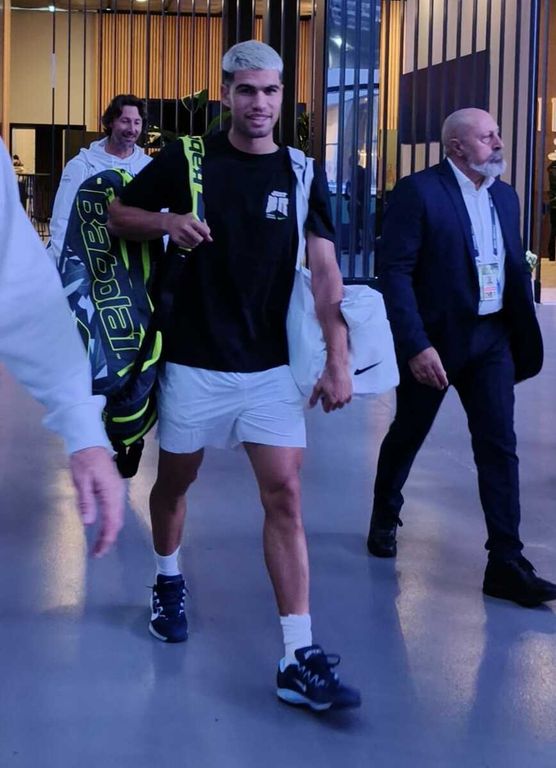Sulla panchina dello spagnolo, il coach Juan Carlos Ferrero. E durante la partita, Alcaraz ha deciso di sfoggiare una maglietta con la sua immagine sulla schiena. Un allenamento comunque segnato da scambi potenti, sotto l'occhio delle telecamere.