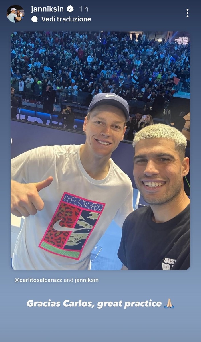 E tornando al torneo, dopo l'allenamento di questa mattina Sinner ed Alcaraz si sono scattati un selfie, che sta facendo il giro dei social. Il campione italiano ha scritto "Grazie Carlos, grande allenamento". A commentare il post anche il collega Matteo Berrettini, che in modo ironico ha detto: "bravini".