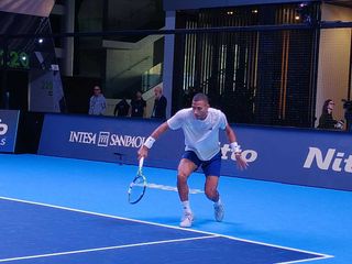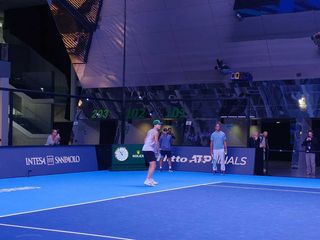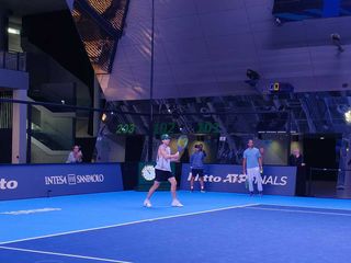 Primo allenamento per Jannik Sinner e Carlos Alcaraz, sul campo del foyer dell'Inalpi Arena, alle Nitto Atp Finals 2025 in programma da domenica al 16 novembre a Torino. I due tennisti hanno iniziato il match pochi minuti dopo le undici, entrambi accompagnati dal loro team: affianco al campione altotesino i due allenatori Darren Cahill e Simone Vagnozzi.