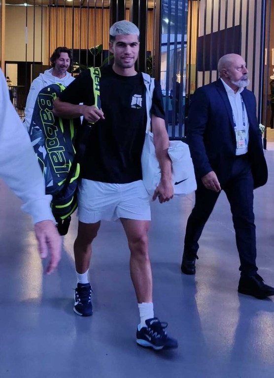 Prima di spostarsi sul campo centrale, Alcaraz si è fermato per firmare un paio di autografi. L'arrivo dei due campioni nell'arena ufficiale è stata salutato dall'entusiasmo dei tifosi presenti. Un pubblico costituito principalmente dai bimbi delle scuole, che hanno accompagnato l'ingresso in campo di Sinner con il coro "Jannik, Jannik", applausi e grida festose.