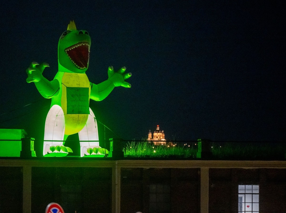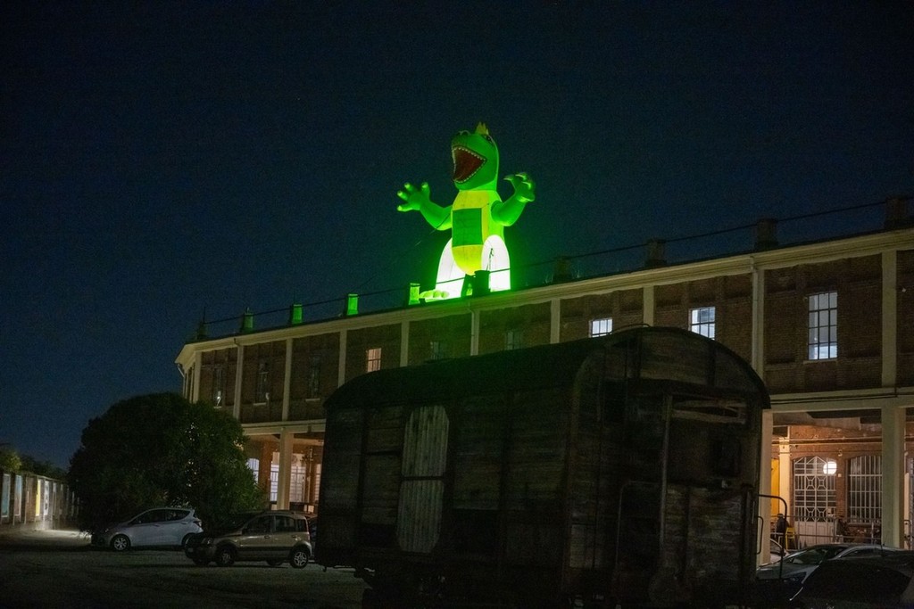 Svelato il segreto del t-rex comparso nei giorni scorsi sui tetti dei Docks Dora, a Barriera di Milano. In tanti avevano segnalato la curiosa presenza di un dinosauro alto 9 metri che dominava la zona, ma nessuno aveva saputo dare una spiegazione.