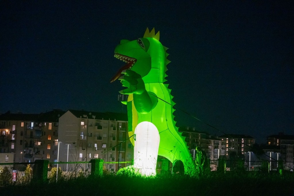 Torino, per lei, è solo una delle tappe di un lungo viaggio. Un percorso che ha già toccato Parigi, Amsterdam, Losanna, Friburgo e zone della Loira e della Provenza. Ovviamente è un dinosauro gonfiabile, verde come lo spirito green che si spande sempre più forte nella coscienza comune.