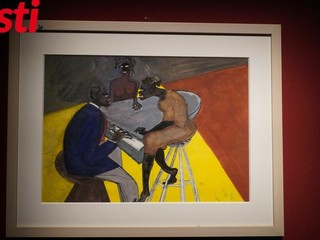 Il percorso espositivo, definito sotto la guida dello stesso Conte, spazia tra tecniche e soggetti diversi. Tra le opere più significative spicca Higginbotham del 1957, un omaggio a tempera e inchiostro a uno dei primi grandi trombonisti jazz.