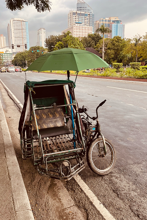 Le Filippine sono anche un Paese fortemente Cattolico e la preghiera qui non è privata, ma pubblica, condivisa. Davanti alla chiesa di “Quiapo”, la folla si muove lenta, intensa, tra rosari, amuleti e statue del “Nazareno” che passano di mano in mano come reliquie. La fede è anche materia viva: si compra, si tocca, si respira. Manila non prega in silenzio. Le famiglie siedono sui gradini in attesa della messa, gli altoparlanti diffondono canti religiosi che si mescolano al rombo dei tuk-tuk, i piccoli tricicli motorizzati che attraversano le strade come insetti metallici. Decorati con adesivi, luci e scritte, sono il mezzo di trasporto più utilizzato. Si infilano tra le auto, sfiorano i passanti, trasportano studenti, lavoratori e viaggiatori. Per pochi pesos ti portano ovunque, a patto di accettare il vento in faccia e il rumore del motore nelle orecchie.