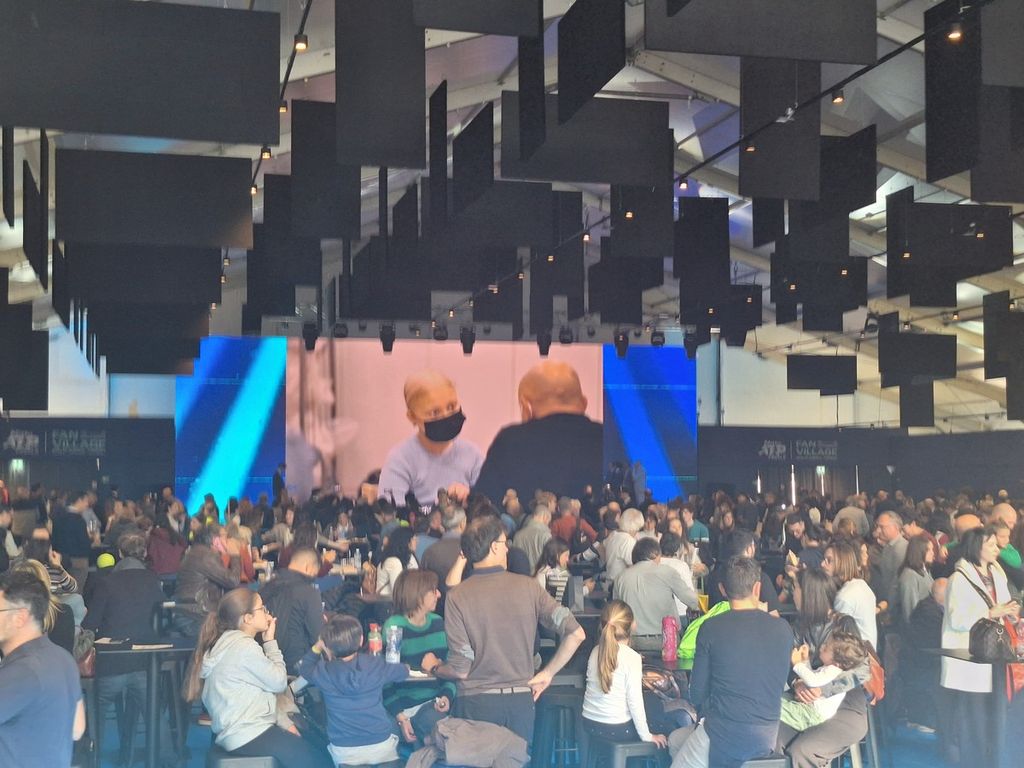 L’evento si è tenuto all’interno del Fan Village allestito di fronte all’Inalpi Arena, già affollato fin dal mattino tra famiglie, bambini e appassionati di tutte le età. Qui il tennis si vive da vicino: tra i percorsi dedicati alla pratica sportiva, è possibile provare alcuni campi allestiti sia per il padel sia per il tennis, avvicinando i più piccoli e i curiosi al mondo delle racchette.