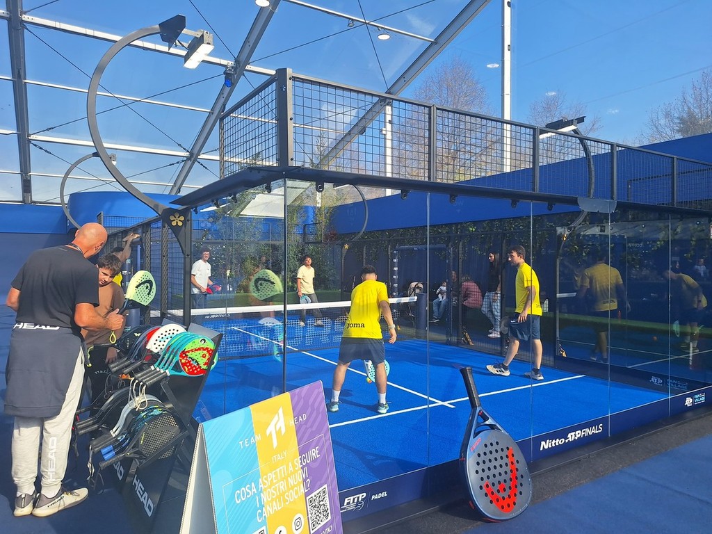 L’evento si è tenuto all’interno del Fan Village allestito di fronte all’Inalpi Arena, già affollato fin dal mattino tra famiglie, bambini e appassionati di tutte le età. Qui il tennis si vive da vicino: tra i percorsi dedicati alla pratica sportiva, è possibile provare alcuni campi allestiti sia per il padel sia per il tennis, avvicinando i più piccoli e i curiosi al mondo delle racchette.